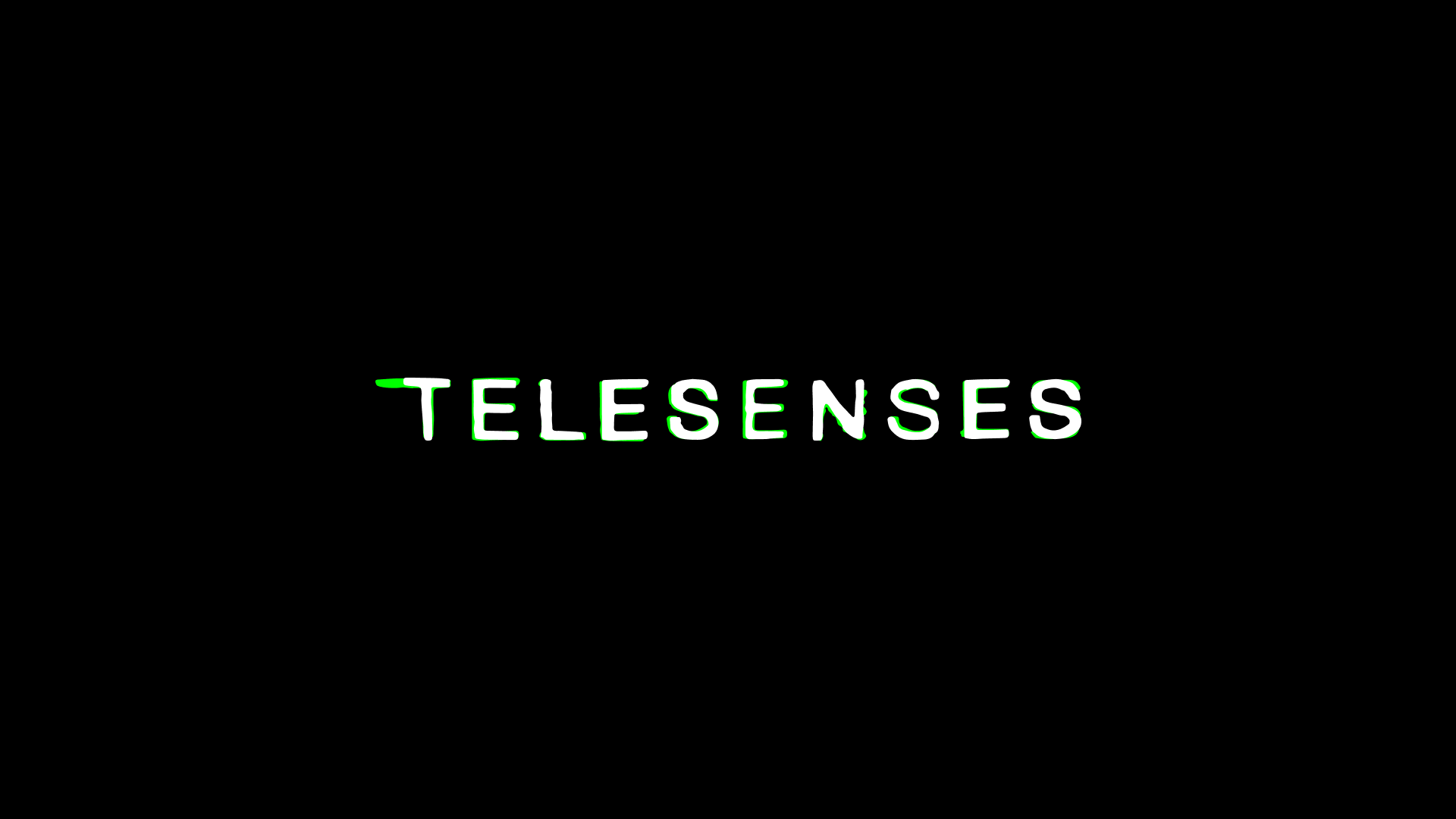 Logo e identidade da apresentação do projeto de conclusão de curso da Vitória Botelho, ”Telesenses”. Por meio de uma experiência de ciberarte que simula interações entre usuários do ciberespaço, o trabalho busca uma reflexão do participante sobre o comportamento comunicacional interpessoal mediado por computadores, mais especificamente, as agressões on-line.